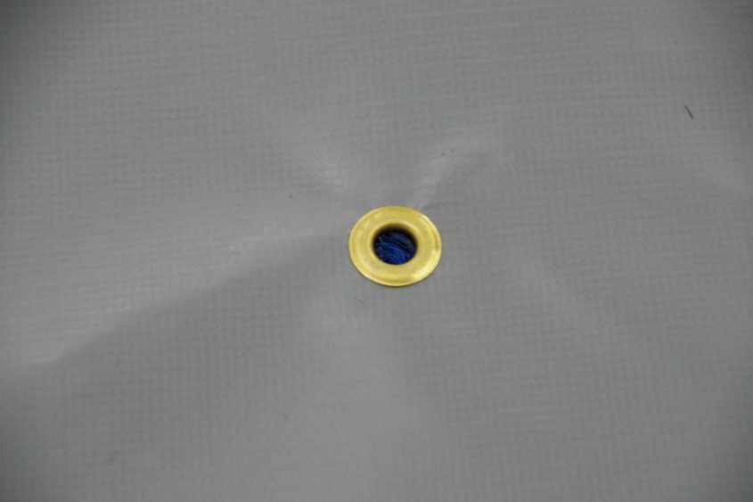 One eyelet in the center, for draining, or also help a bit to let it breath a bit.