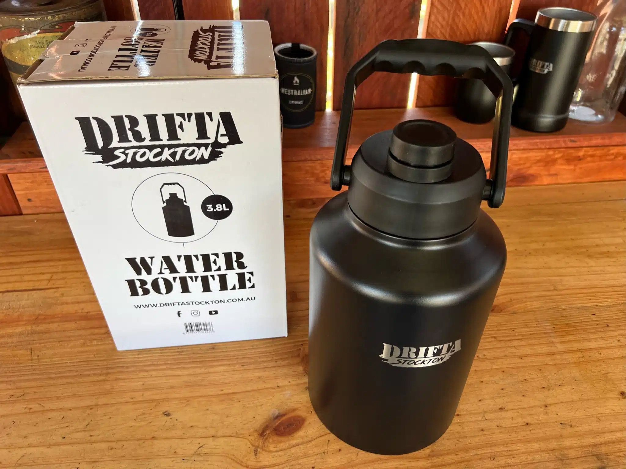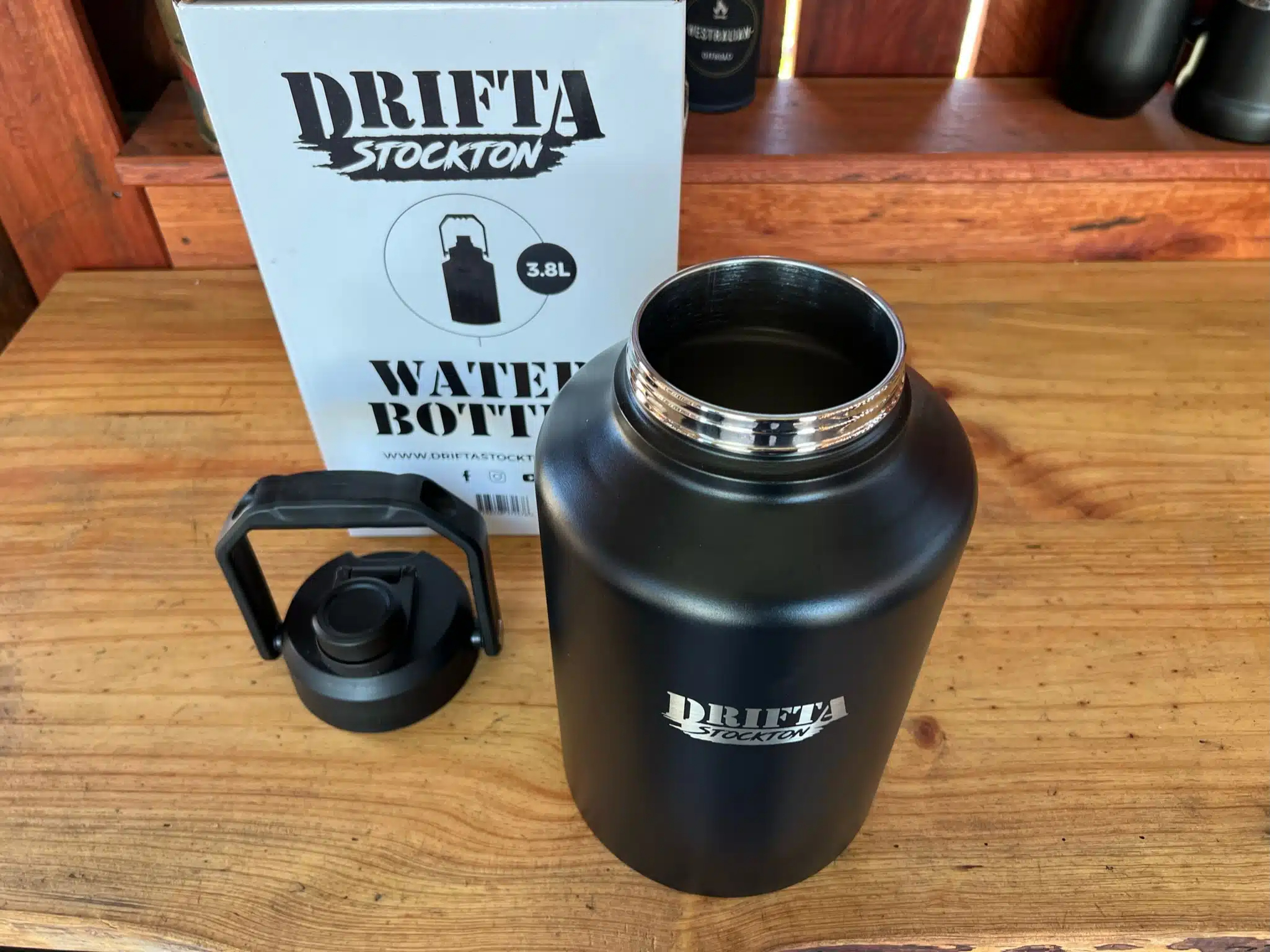 Drifta Stockton 3.8L water bottle. Stainless steel material. Perfect for long days. Keep your water fresh and cold.