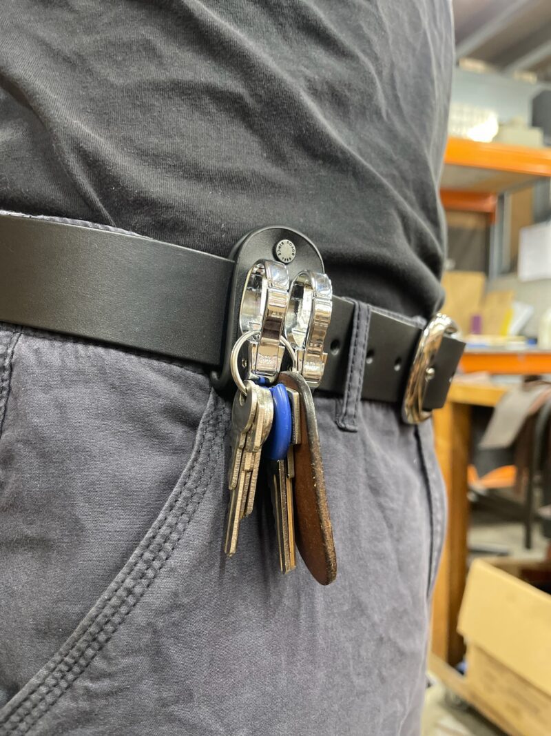 Perfect way how to attach keys or other small items to your belt. Quick and easy. You will never have to search for your keys again 🙂 This will fit all standard belt sizes.