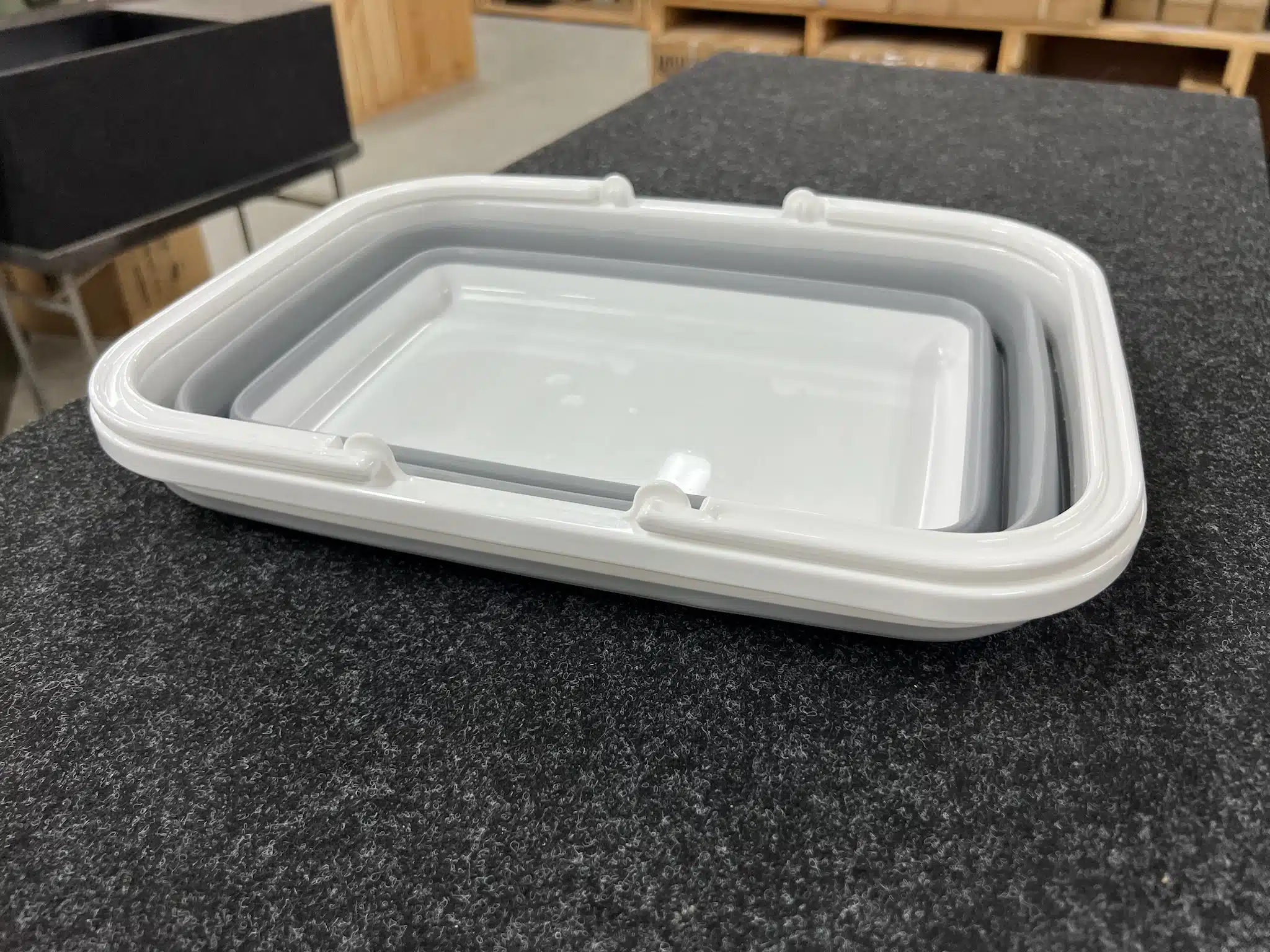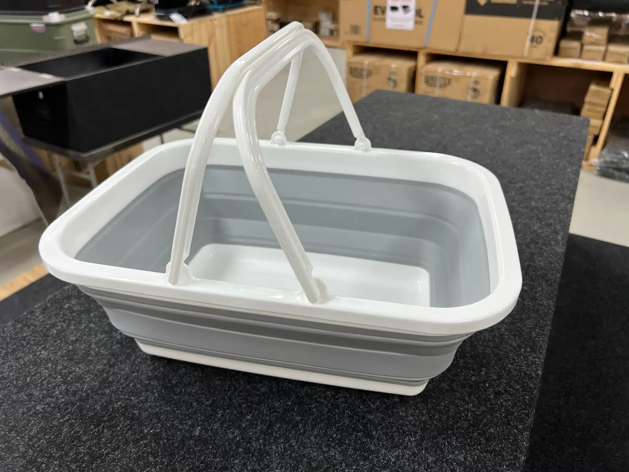 Two tubs are so much better than one.. i think a plastic tub is better than a stainless sink on a camping kitchen (don’t need waste hose, waste bucket, and don’t have inlet problems) but two tubs is even better… dirty dishes in one, wash up in the other, or wash up in one, drain in the other.. it was hard to fit two of the black plastic tubs in our kitchens, but now these are perfect.. top and bottom are hard plastic, the middle is tough silicon.