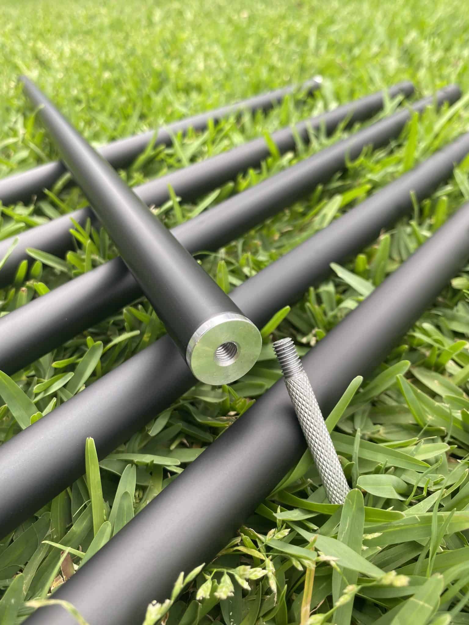 All poles have a straight spigot that can be removed and replaced with another 8mm thread.