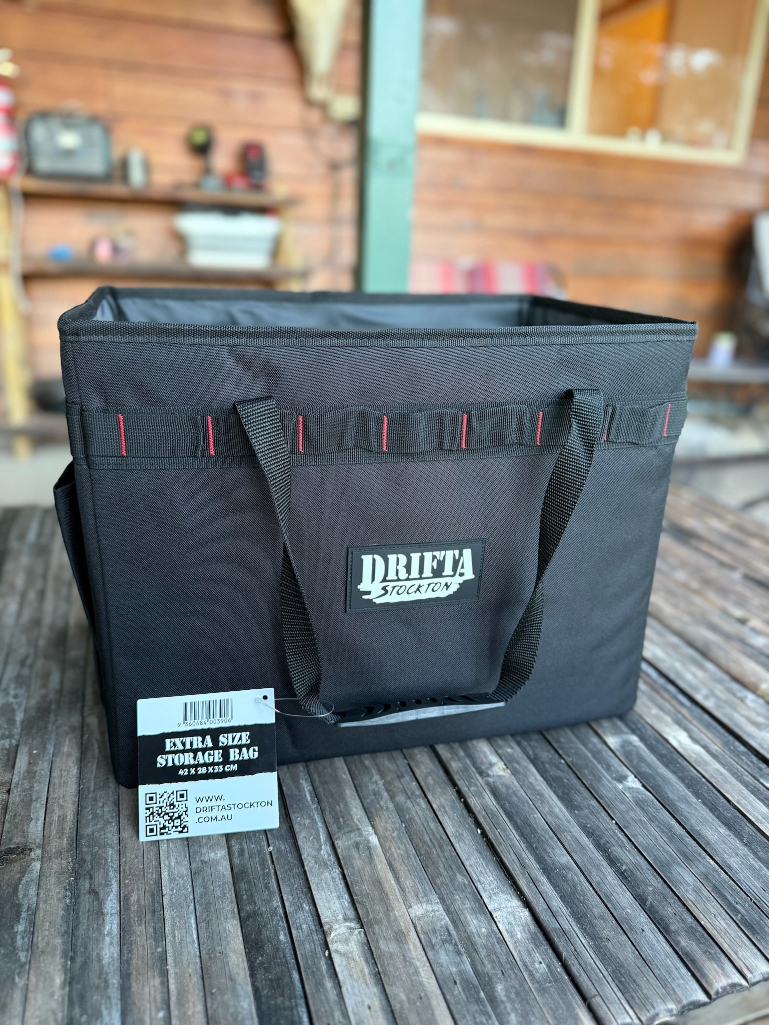 Elevate your organization game with the Drifta Stockton Extra Size Storage Bag, a durable and spacious solution for all your storage needs. Crafted from high-quality, rugged fabric, this extra-large bag (dimensions: 42 x 28 x 33 cm) offers ample space to store tools, gear, or outdoor essentials. Featuring sturdy handles and reinforced stitching, it ensures easy portability and long-lasting use. The sleek black design with the iconic Drifta Stockton branding adds a touch of style, while the additional side pocket provides convenient access to smaller items. Perfect for camping, fishing, or workshop organization, this storage bag is your go-to companion for keeping everything in place.