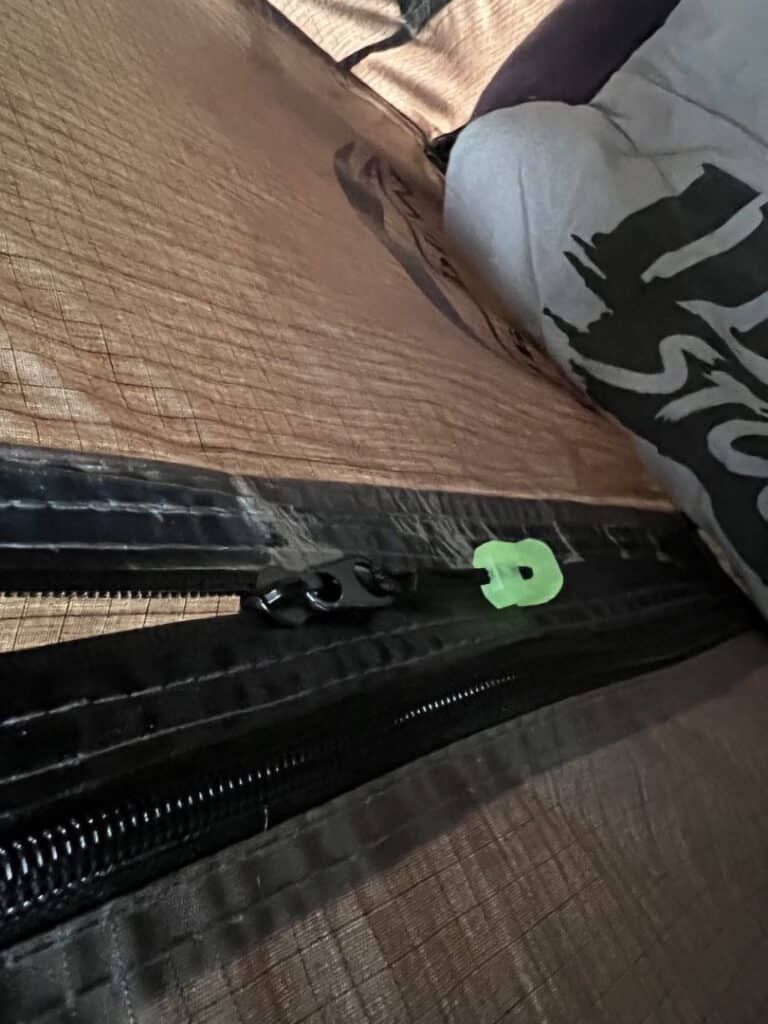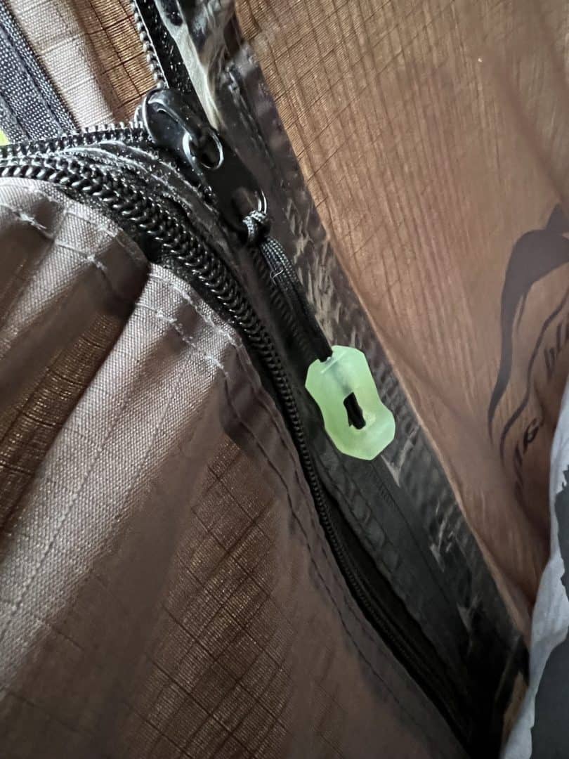 Great zipper pulls that will glow in the dark so easy to find at night when you want to unzip your zip your swag or tent.