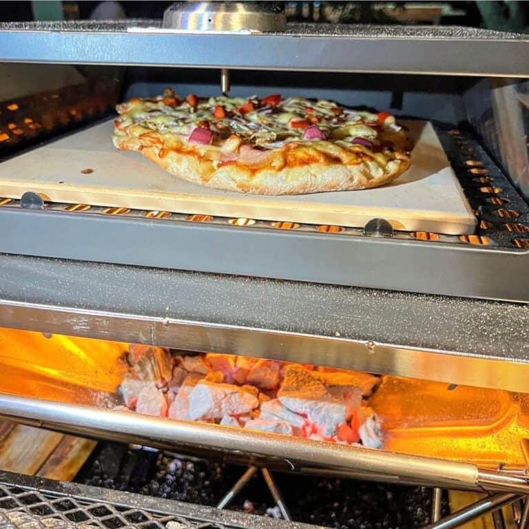 This Pizza oven is a great addition to the Drifta Stockton fire pit or any other same style firepit. Works for large and medium. You can place this on the grill bridge and make pizzas. Built in thermostat to help you get the oven to the right temperature before inserting pizza.
