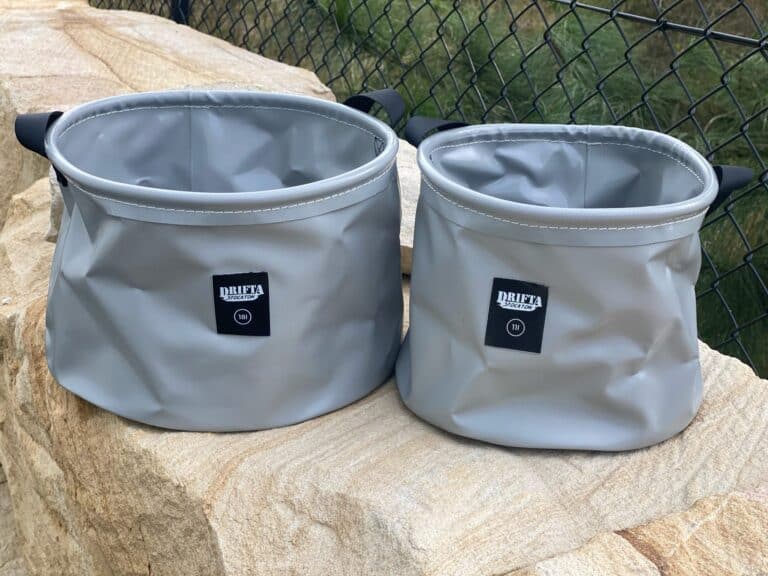 PVC buckets are a great way to get water to the campsite. They pack up flat and are lightweight.