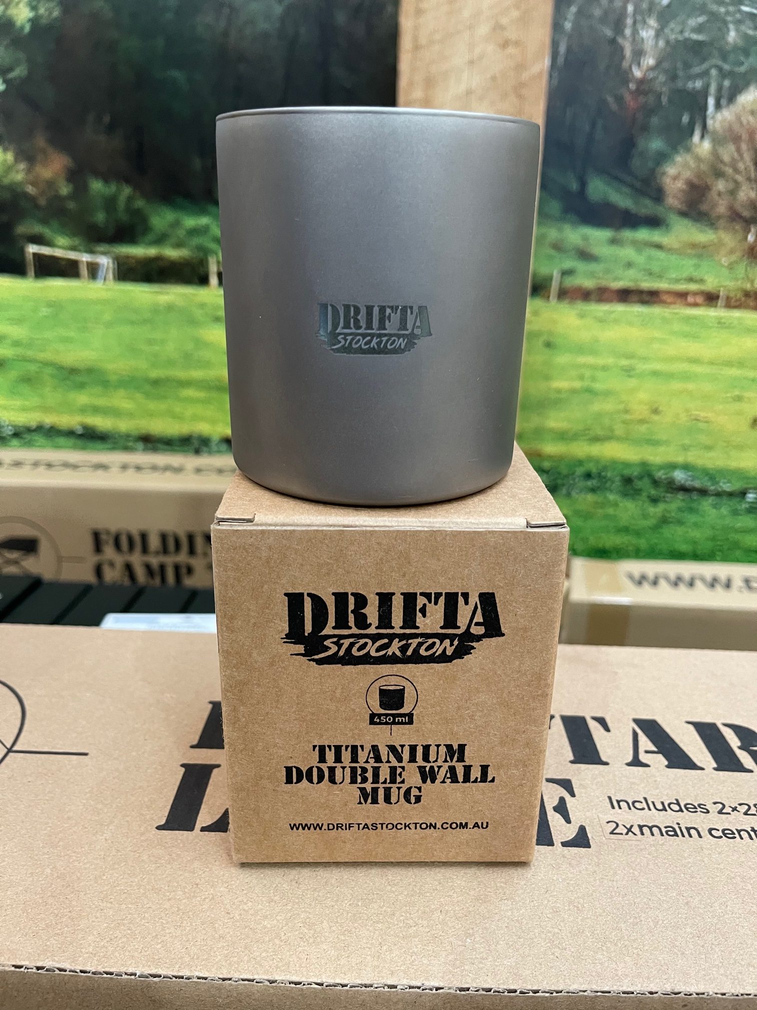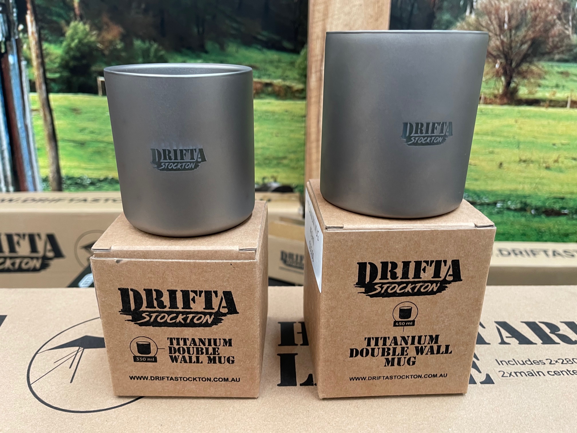 Drifta Stockton titanium double skin mugs are very only 100gr. They keep your drinks warm/cold thanks to the to layers.